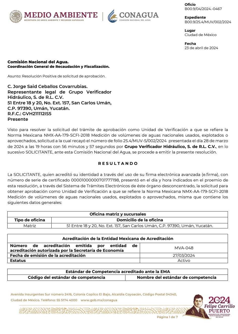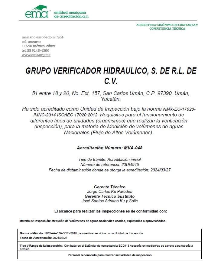Es una Unidad de Inspección acreditada ante el EMA y aprobada por CONAGUA, que se dedica a la asesoría e inspección en medidores de carrete para tubería a presión, con forme a la norma NMX-AA-179-SCFI-2018.